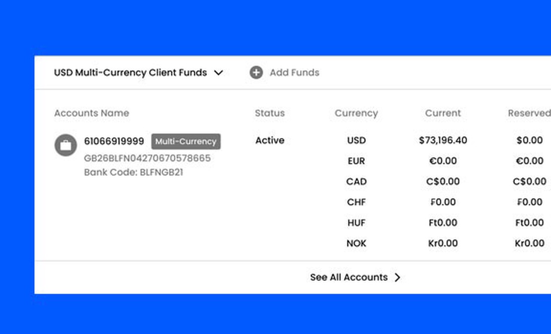 Blackthorn offers EUR, USD , GBP and Multi currency dedicated IBANs for our Corporate and SME clients in their company name. Send and receive payments seamlessly, request additional IBANS, and confirm your transactions instantly with our robust back-office solution.
